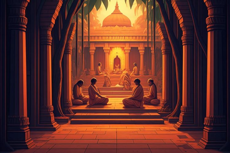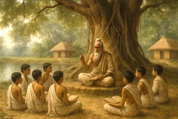 The Upanishads were taught and handed down by Gurus to their disciples. Parents to children via discourses. Between ages 8-21. Students reflected upon the knowledge. Also, debated amongst themselves to consolidate their understanding. This made them wise and astute in the world. Resolute on the path of Self-realisation.